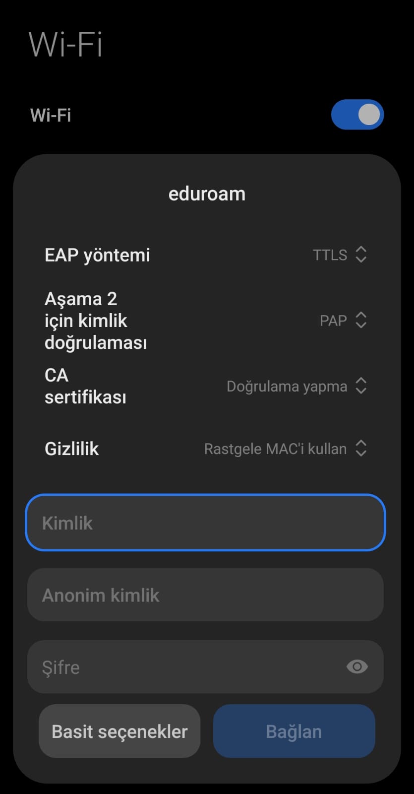 Note: Leave the Anonymous Identity field blank.